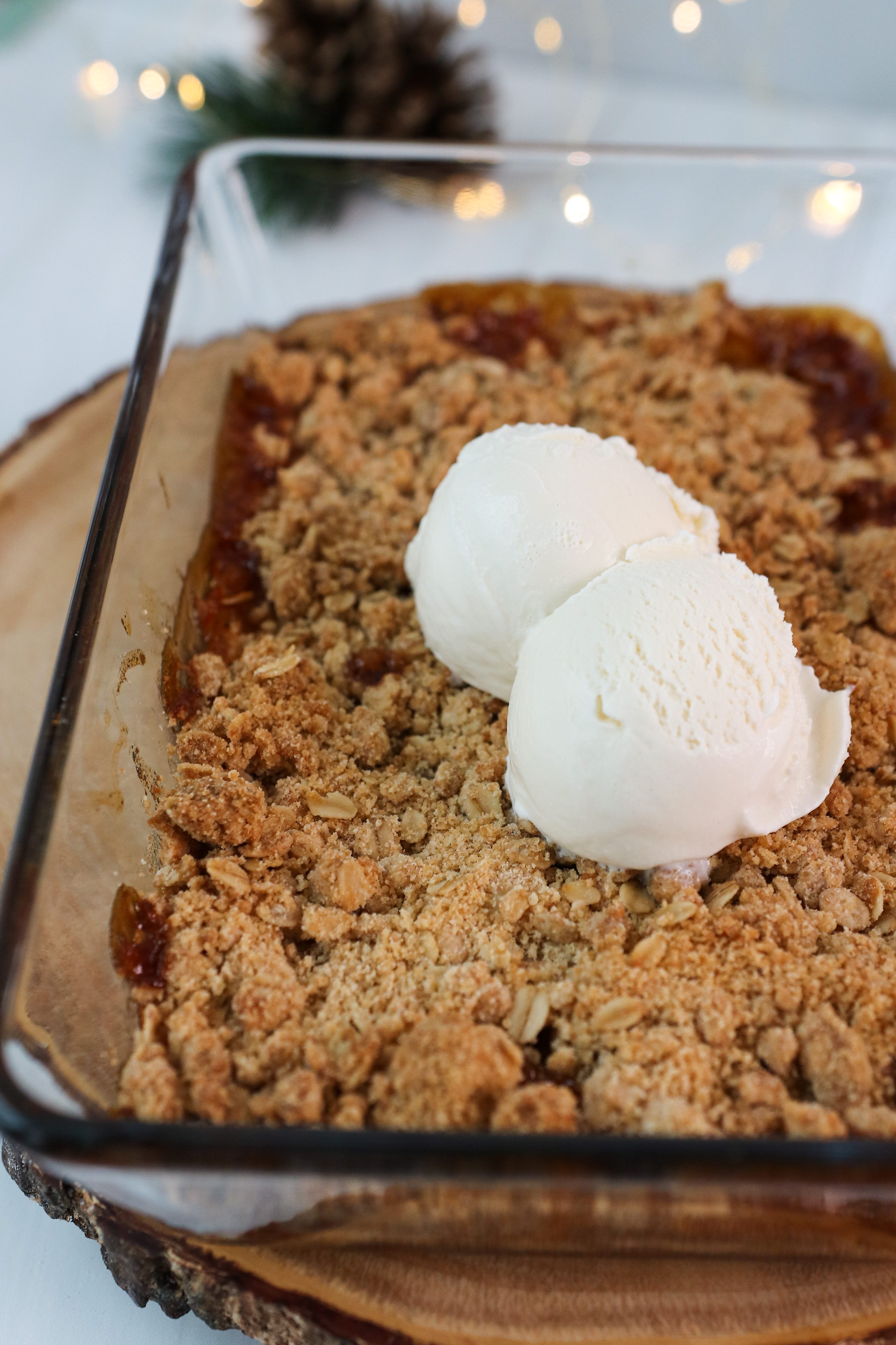- Once baked, remove from the oven, allow to cool for about 10 minutes. Serve warm with your favorite vanilla ice cream and enjoy!
