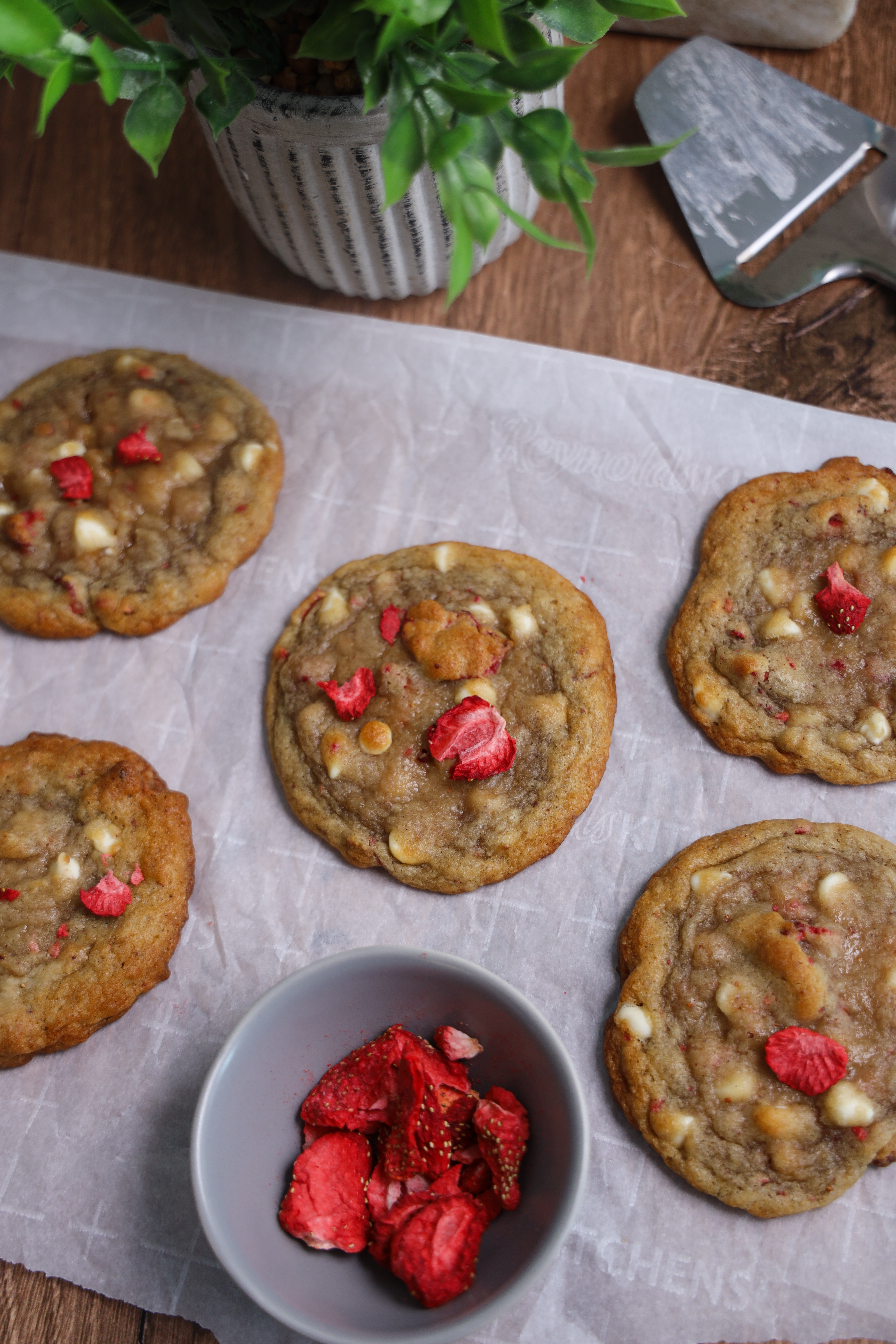 - Freeze dried strawberries: I recommend freeze dried strawberries, that way the moisture is removed from the cookies