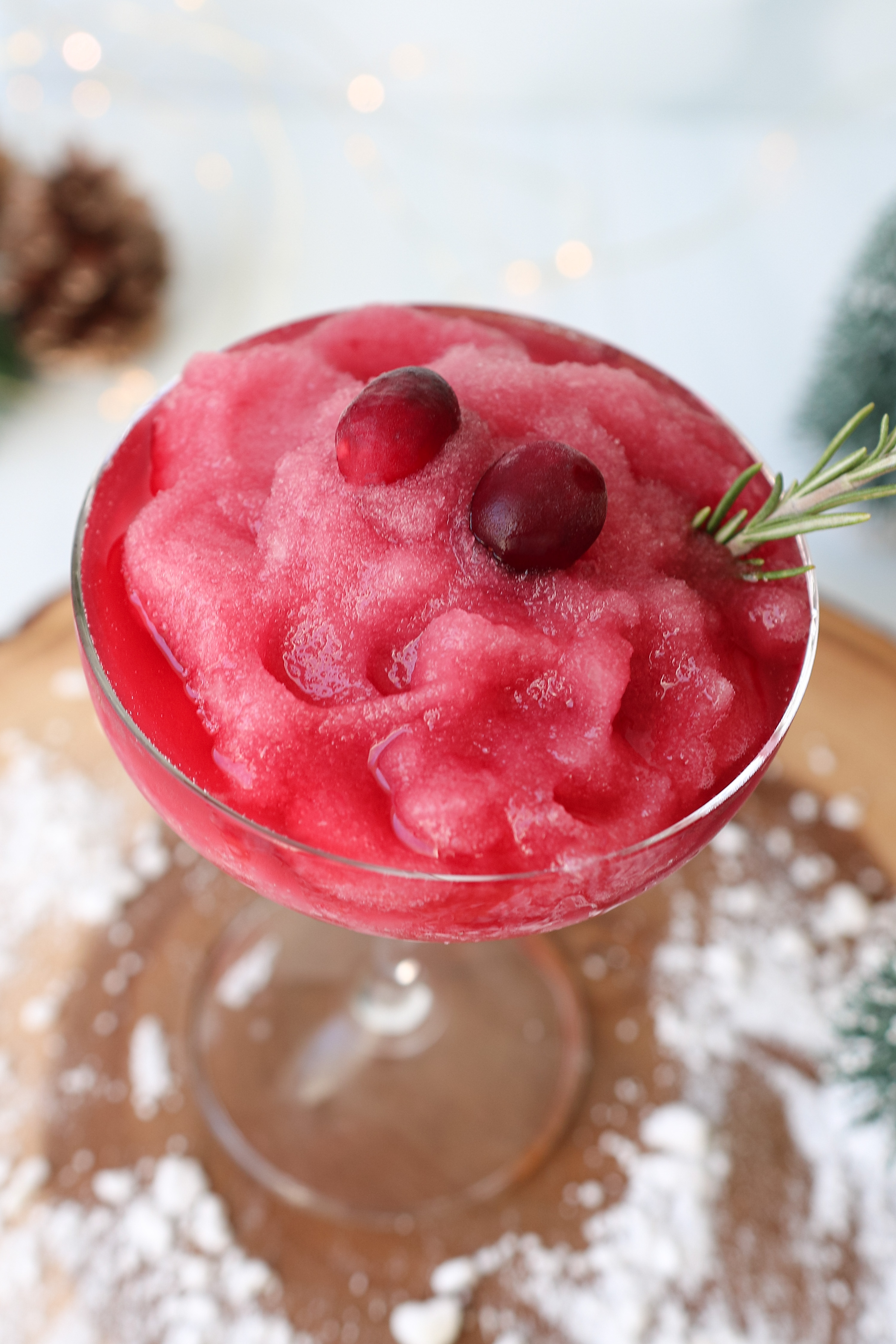 I know, I know what you’re thinking… a frozen drink in the winter? Listen… I LOVE a frozen cocktail and will have them anytime of year. And I think this is such a fun take on the classic cosmo. Made with seasonal fruit juices and citrus AND blended until it’s nice and smooth. Even though it may be cold outside, crank the heat up and enjoy the refreshing vibes- sipping on this frozen Christmas cosmo.
